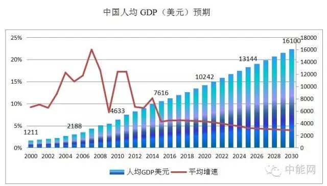 到2030年,中国的人均GDP将是一个什么水平?李克强总理说:“只要保持平均6.5%的增速,将超过90万亿。”包括国务院发展研究中心一些研究人员和各研究机构推算也是如此,到2020年中国的GDP总量超过90万亿人民币,达到人均1万美元的目标;2030年按照今天的币值计算将超过150万亿人民币,人均1.6万美元。