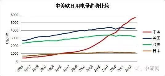 我们看到的各种涉及电力规划的报告都认为,中国的能耗可能下降,而电力需求还将大幅度继续增长。理由是到2015年美国人均用电量12904kWh,加拿大17317 kWh,中国只有4077 kWh,不到美国的1/3,不到加拿大的1/4。确忽略了一个很直接的问题,就是几乎所有的经济发达国家的人均电力需求从2007年全球经济危机之前的高位,都开始大幅度下滑。美国7年降低了6.99%,平均每年降低1%,如果按照这一发展趋势,到2050年将可能下降35%,人均用电将降至8388 kWh。实际上,2015年美国就比2014年的人均用电下降了573kWh,下降了4.25%。