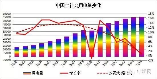 延续这种趋势带来的结果就是中国全社会用电量增速的下降,尽管2008年经济危机和此后的四万亿投资拉动形成过一次剧烈波动,但是用电增速减缓的趋势没有改变。