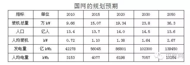 国网公司在2012年制定的那个非常宏伟的规划,到2020年装机19.34亿kW,人均装机1.38kW,发电量8.68亿kWh,人均电量6198kWh。2015年12月18日,国家电网发布 “十三五”电网发展规划研究成果,提出了2020年全国电源装机总量进一步提升到20.7亿千瓦的目标。令人震惊的是这一目标得到与会的五大发电公司专家们的首肯。认为:国网规划体现了国家能源变革与能源转型思路,符合未来能源电力发展需求。